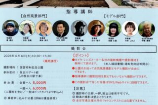 6月6日、昭和記念公園で開催する撮影会です。自然風景とモデル撮影をお楽しみください。9名の講師による指導、そして機材メーカーからの貸し出しもあります。支部会員は支部から、個人会員は所属都県本部を通してお申し込みください。締切は4月25日です...